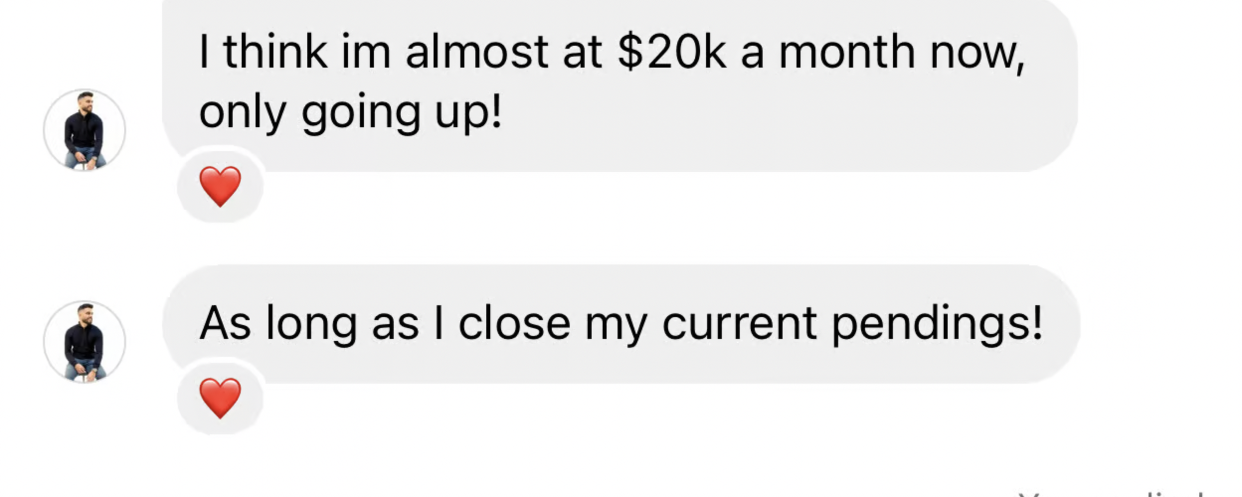 With the lead system and done-for-you marketing setup, Sarah closed 3 deals in 6 weeks. Now she averages $18,000/month in commission and is building her brand online with confidence.