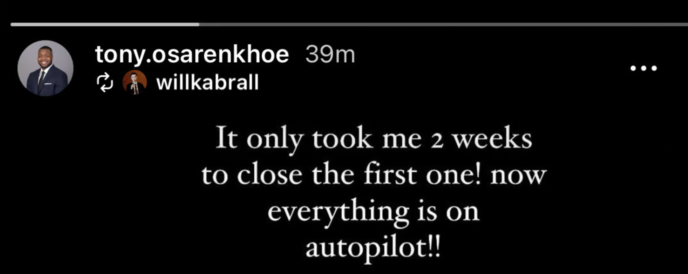 The system helped him funnel traffic directly into a call booking flow. He closed 5 buyers in 90 days and now links every video to his branded lead page.